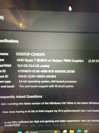 Used Lenovo IdeaPad 16" With Ryzen 7 8845HS, 16GB RAM 1TB Touchscreen - $250 (Rex)