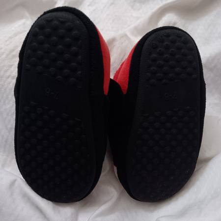 Mickey Mouse Slippers House Shoes Boys or Girls Size 7-8 Mickey's smiling face covers the top of each foot Soft fleece around the ankles and insides Warm and soft Cushioned insoles Bottoms are...