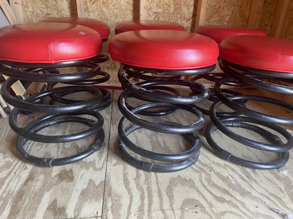 I have six and a half coil stools for kids. Four are in great shape. One has small rip on stool. One needs to be re upholstered. And the half is the coil only No seat. But can be made easy. They weigh near 80 pounds each. They were used in Build-a-bear workshops. Asking price is firm for all pieces. Cleaning out the house. Items are still available if still posted.