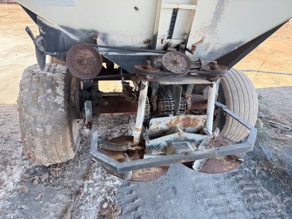 The Willmar S-600 (https://www.tractorhouse.com/listings/for-sale/willmar/s600/fertilizer-applicators-chemical-applicators/1140) is a 6-ton pull-type dry fertilizer spreader designed for agricultural applications. Key features include a 409 stainless steel hopper, 540 RPM PTO drive, 65 ft spread width, and flotation tires (typically 16.5L-16.1SL).