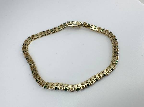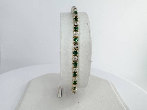 Ladies Emerald & Diamond 14k Yellow Gold 7” Tennis Bracelet 11053735...
